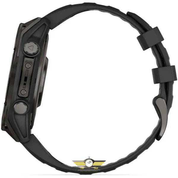 رنگبندی خاکستری تیره و مشکی، علاوه بر جذابیت بصری، باعث شده ساعت Fenix 8 با انواع لباس و سبکهای ورزشی یا روزمره هماهنگ شود. طراحی اسپرت و ضخامت مناسب، باعث شده حتی در فعالیتهای شدید و تمرینات طولانی، ساعت روی مچ شما راحت باقی بماند.