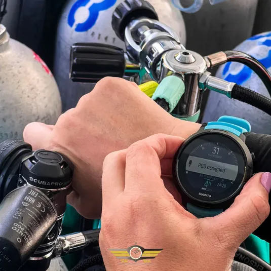 رنگ آبی روشن علاوه بر زیبایی بصری، کمک میکند ساعت در زیر آب بهتر دیده شود و تجربه غواصی شما را امنتر کند. این ویژگی به غواصان امکان میدهد موقعیت خود را سریعتر تشخیص دهند و با ایمنی بیشتری حرکت کنند.