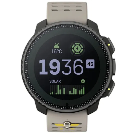 یکی از مهمترین دلایل محبوبیت ساعت سونتو Suunto Vertical Solar Sand، سیستم شارژ از طریق نور خورشید است. این فناوری به شما کمک میکند در سفرهای طولانی یا کوهنوردیهای چندروزه، بدون نگرانی از اتمام شارژ، از ساعت خود استفاده کنید.